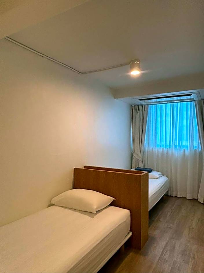 The twin room features a private bathroom equipped with a shower and a hairdryer. The unit offers 2 beds. This room is located on the 6th floor with no elevator access.